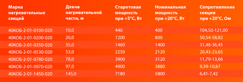 Секция нагревательная кабельная 40КОБ-2-01-0970-020