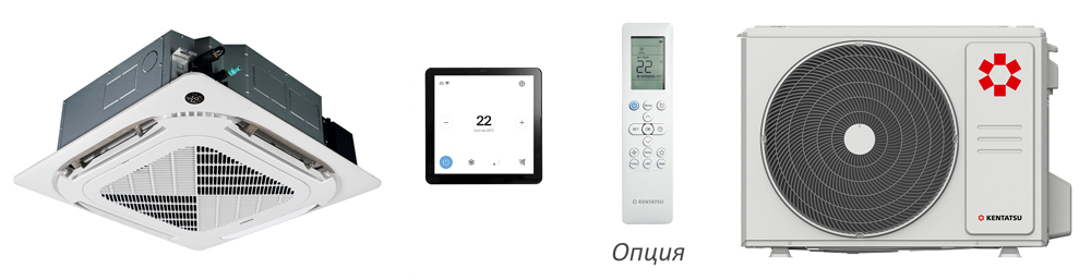 Компактная сплит–система предназначена для потолочной установки в помещениях с небольшой площадью: офисы, кафе, рестораны и другие общественные места. Внутренний блок имеет компактный размер и встраивается в подвесной плиточный потолок с размером плитки 600 х 600 мм. Есть возможность организации приточной вентиляции для подмеса свежего воздуха в помещение. Кондиционер можно доработать зимним комплектом для эксплуатации в режиме охлаждения при низких уличных температурах до -40 °С.