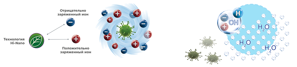 - Ni Nano (ионизатор) — превосходно борется с бактериями, вирусами, плесенью и запахами и способствует удалению пыли и пыльцы, создавая положительно и отрицательно заряженные ионы