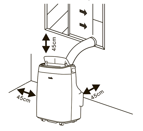 Современный стильный передвижной кондиционер, работает только на охлаждение, имеет автоматический режим и режим комфортного сна, таймер, управление с пульта ДУ или через панель на блоке. Устанавливается рядом с окном или специальным отверстием в стене, через которое необходимо вывести воздуховод для отвода горячего воздуха (воздуховод в комплекте).