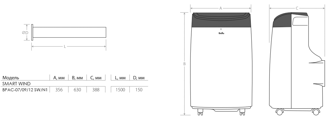 Мобильный кондиционер Ballu BPAC-07 SW/N1 серия Smart Wind