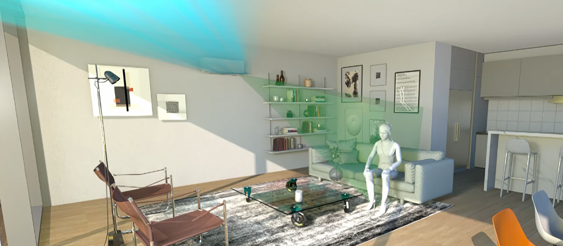 - Двухзонный сенсор движения Intelligent Eye определяет, где находятся люди, и направляет воздушный поток от них.