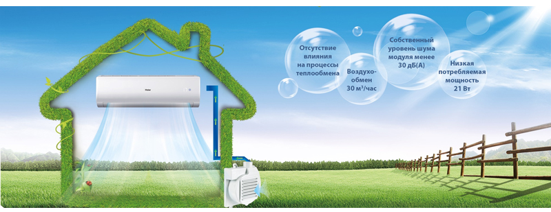 - Возможность установки модуля O2 FRESH (опционально) — модуль обеспечивает приток воздуха с улицы объемом 30 м³/час. Монтируется на поверхность наружного блока или на стену, на которой он закреплен.