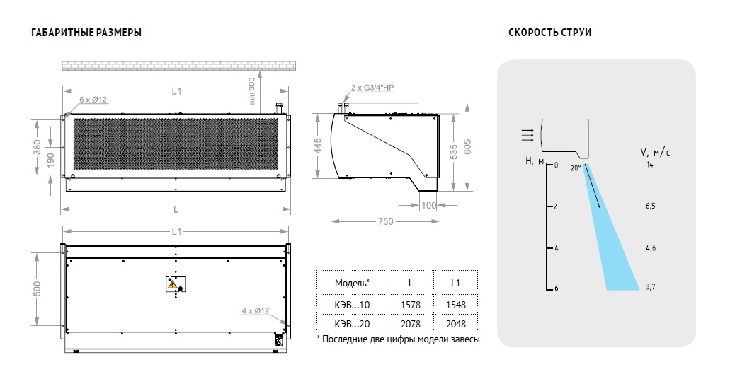 Работает для защиты ворот помещений с большой площадью с высотой подвеса от 4 до 6 метров. Подключается к системе отопления или горячего водоснабжения. Монтируется в складах, железнодорожных депо, автомойках в горизонтальном или вертикальном положениях. Управление осуществляется при помощи пульта HL10. Корпус изготовлен из оцинкованной стали с пылевлагозащитой IP21. Угол сопла устройства составляет 20°С.