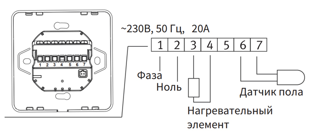 - Программируемый режим — терморегулятор будет включать или выключать подогрев пола в зависимости от заданного времени и температуры по программе, в которой на каждый день недели можно установить до 6 событий обогрева. Эта программа будет повторяться каждую неделю.