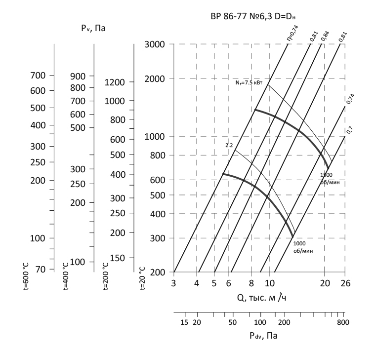 Радиальный вентилятор низкого давления ВР 86-77 / №6,3 / 2,2 кВт / 1000 об./мин. / Прав / 0°